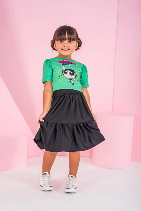 Conjunto saia modelo midi e blusa em malha 100% algodão.